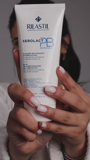 - ضعي كمية مناسبة من Rilastil Xerolact PB Lipid Replenishing Balm على البشرة الجافة.