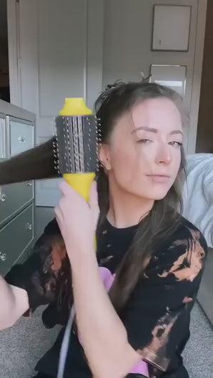 فرشاة تصفيف الشعر تتميز بتصميم بيضاوي لإضافة حجم وتحكم أفضل في التصفيف.